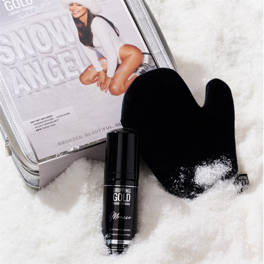 Give the gift of flawless, bronzed skin with Dripping Gold’s bestselling Luxury Tanning Mousse Snow Angel gift set in Ultra Dark.