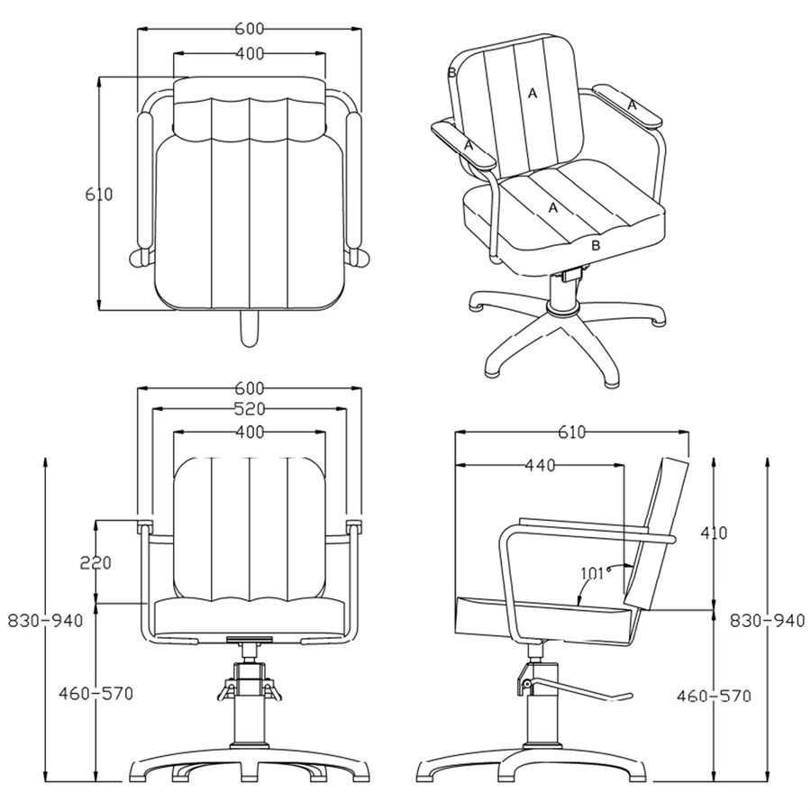 • Chrome plated hydraulic lift with 5 star base Black tubular steel arms with cushions