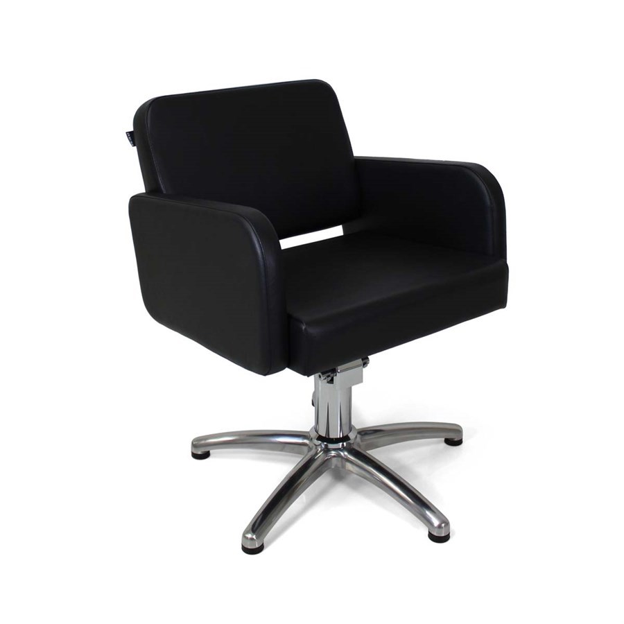 A well-proportioned square design with an angled back makes Colorado Salon Chair extremely comfortable. Its angular shape is balanced by the softness of the upholstered seat pad and arms making it the choice chair for a modern salon.