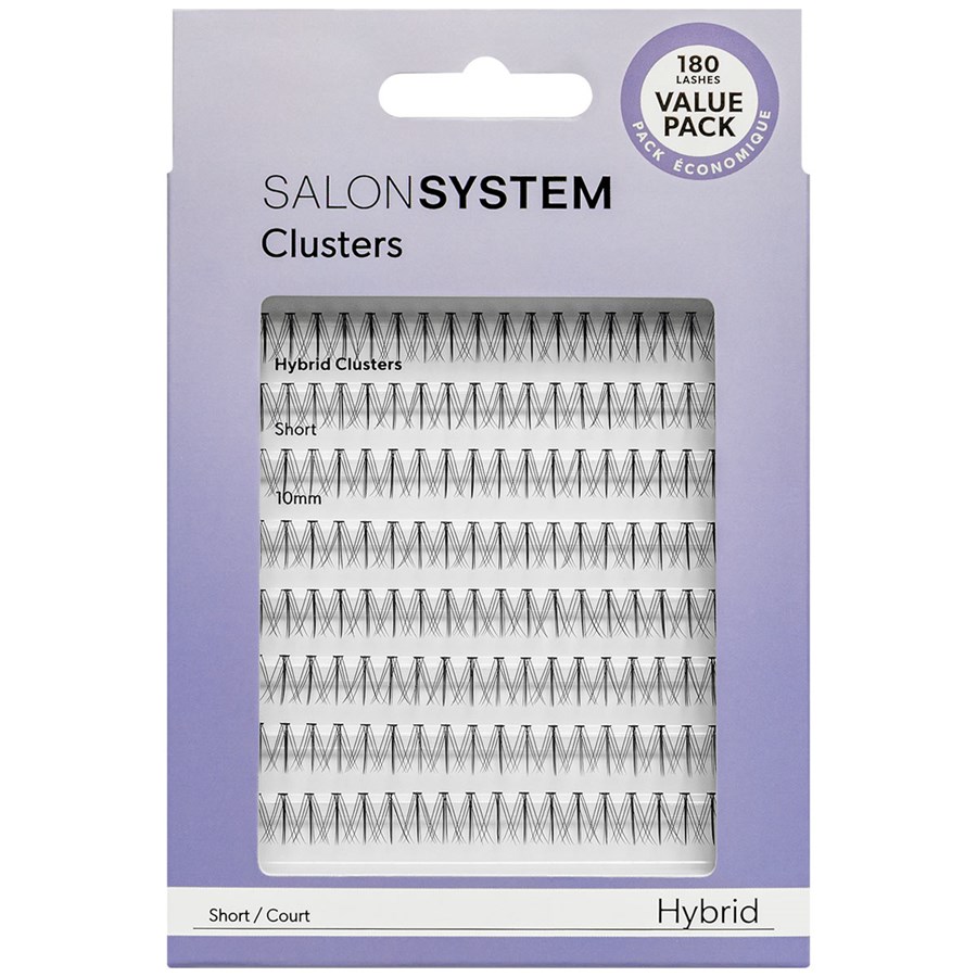 Meet the Hybrid Cluster Lashes from Salon System. These short clusters combine light, natural looking fibres with a wispy, wet-look texture. Now available in a value pack with 180 clusters in a tray.