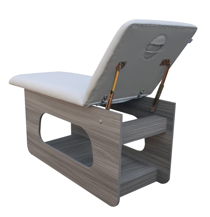 Finished in a contemporary grey laminate with white upholstery the Skye Beauty Spa Bed comes with an integrated storage shelf offers plenty of space for extra towels. The integrated face opening makes using the massage bed especially comfortable for your clients.