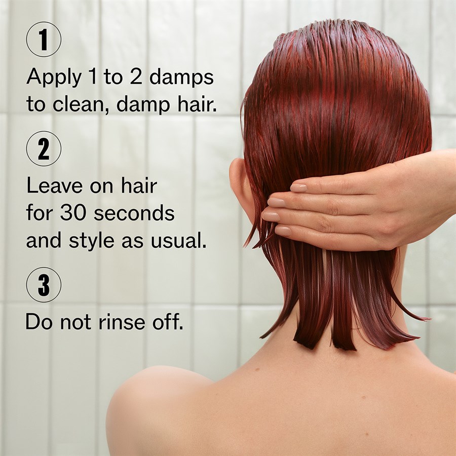 After washing hair with the Wella Professionals Ultimate Color Shampoo and Conditioner (if your hair needs additional detangling), apply 1-2 pumps to damp hair. Leave for 30 seconds before styling as usual. Do not rinse.