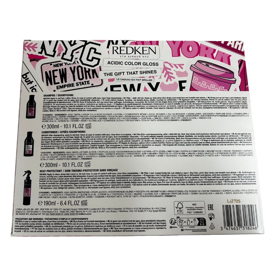 Achieve shiny & vibrant hair with a giftable, limited-edition holiday gift set that includes Acidic Color Gloss Shampoo (300ml), Conditioner (300ml) and Heat Protectant treatment (190ml).