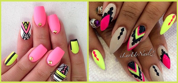 What we love most about the tribal nail trend is that it’s a full-on mash-up of several other trends; it’s brights, neons, stripes and geometric patterns all in one. For inspiration look at the fashion trends available on the high street; kaftans, long flowing skirts and dresses, and palazzo pants have been made-over with oversize tribal prints for a distinctly ethnic Summer vibe. When it comes to colour, don’t be afraid to use black and white as a crisp background for neon yellows and pinks.