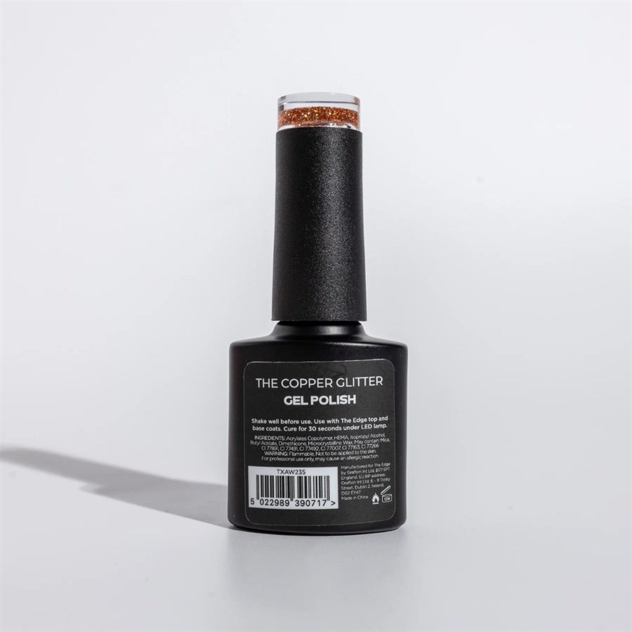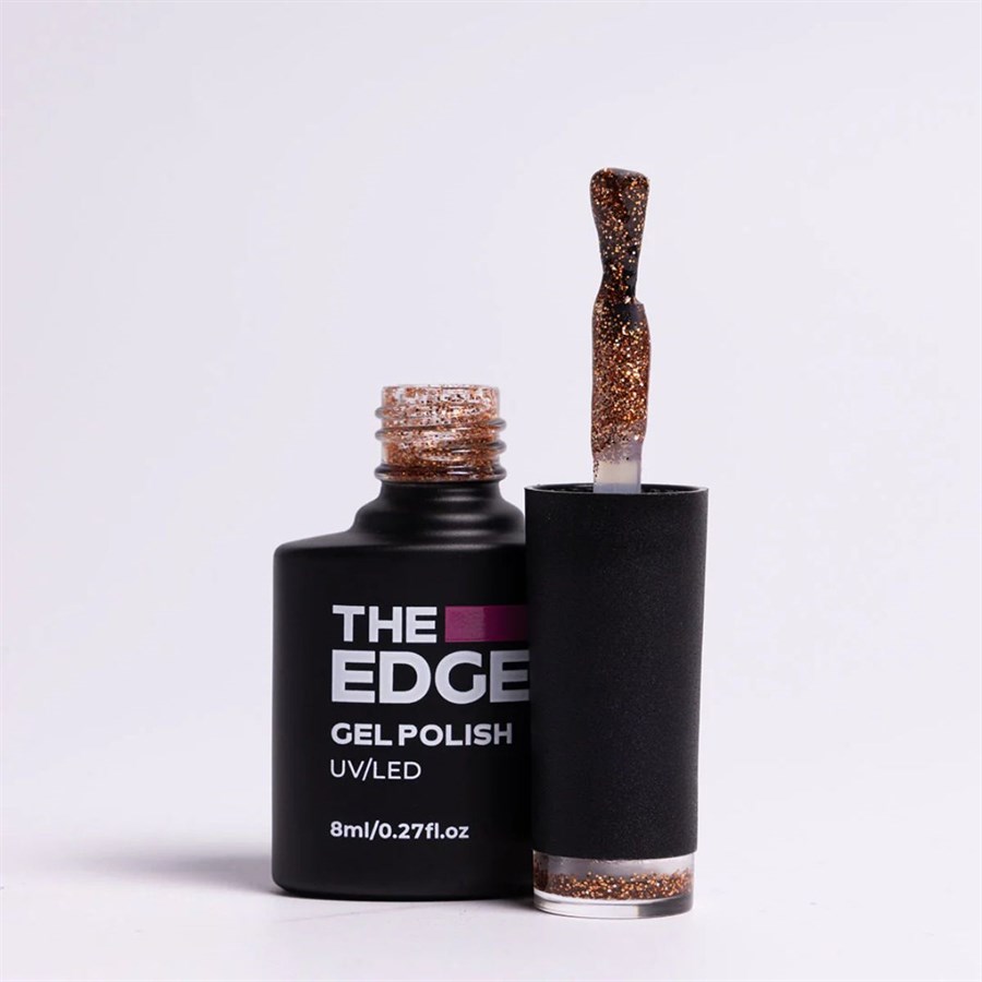The Edge Copper Glitter Gel Polish that's long wearing, chip free and designed to last. New and improved formula now with a 60s curing time.