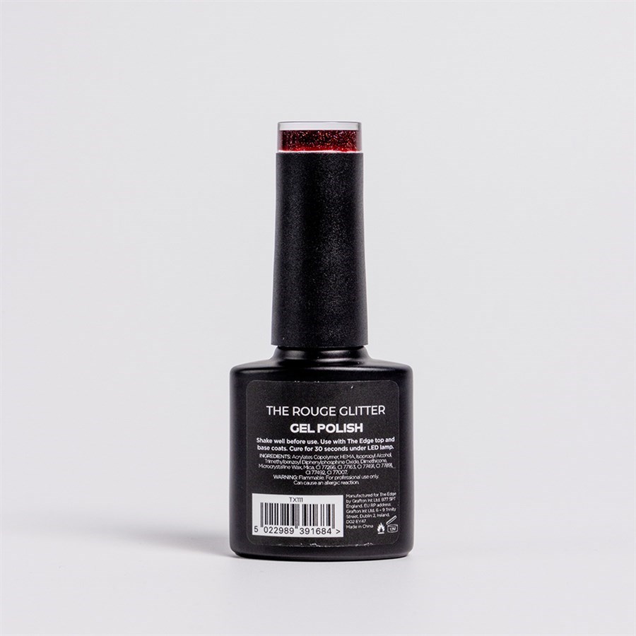 The Edge Rouge Glitter Gel Polish that's long wearing, chip free and designed to last. New and improved formula now with a 60s curing time.