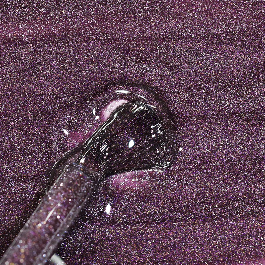 Zero Gel Polish® in the shade Cosmic Dust is a stunning dark purple base full of silver micro glitter that flashes under light.