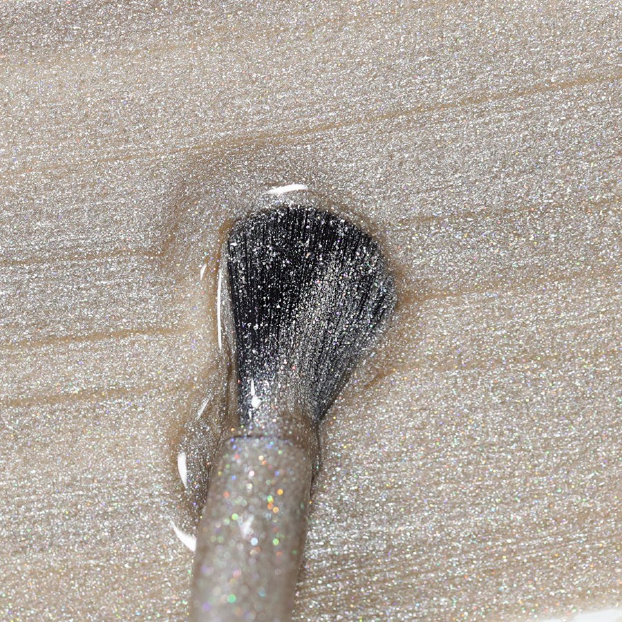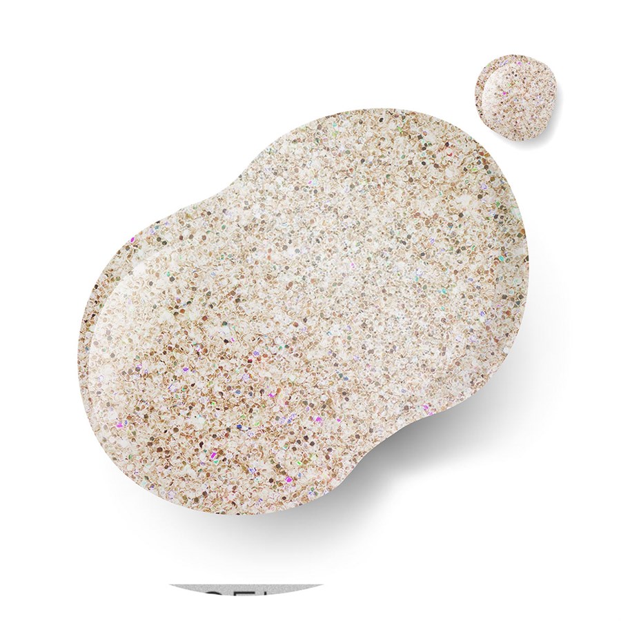 Zero Gel Polish® in the shade Expensive Fizz is a light champagne base with lots of micro-holographic glitter for the chicest sparkle.