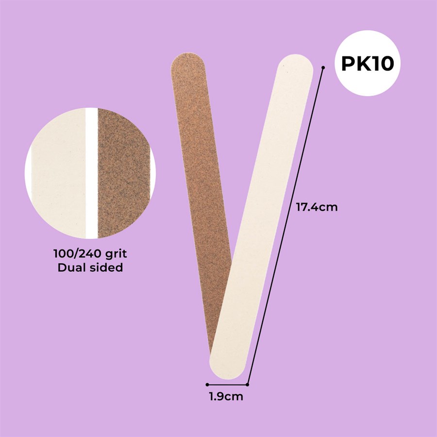 Dual sided boards especially for natural nails. 150/220 grit. Pack of 10.