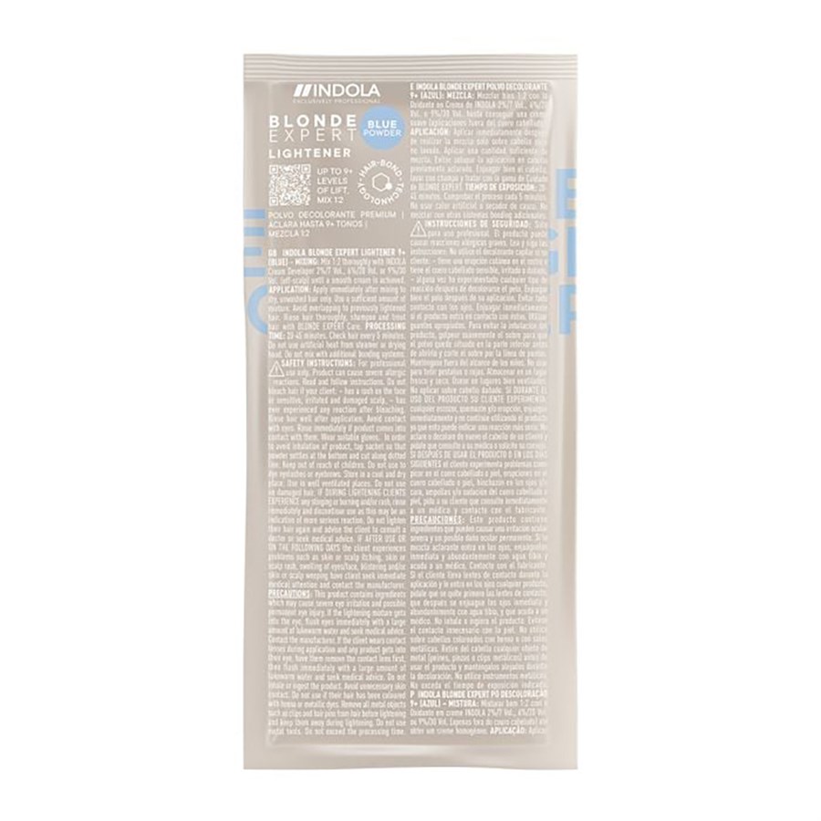 Indola Blonde Expert Lightener 9+ Blue 30g helps you lift hair by 9+ levels to achieve light blonde looks.