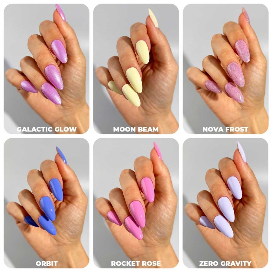 Introducing Cosmic Spring — The Manicure Company’s new gel polish collection inspired by the wonder of space. Think pastel planets, comet trails, and the soft glow of distant nebulae, captured in six brand-new shades designed to shine under any light. From weightless lilacs and orbiting blues to starlit shimmer and prismatic flake finishes, Cosmic Spring brings an otherworldly twist to fresh, wearable spring colour.